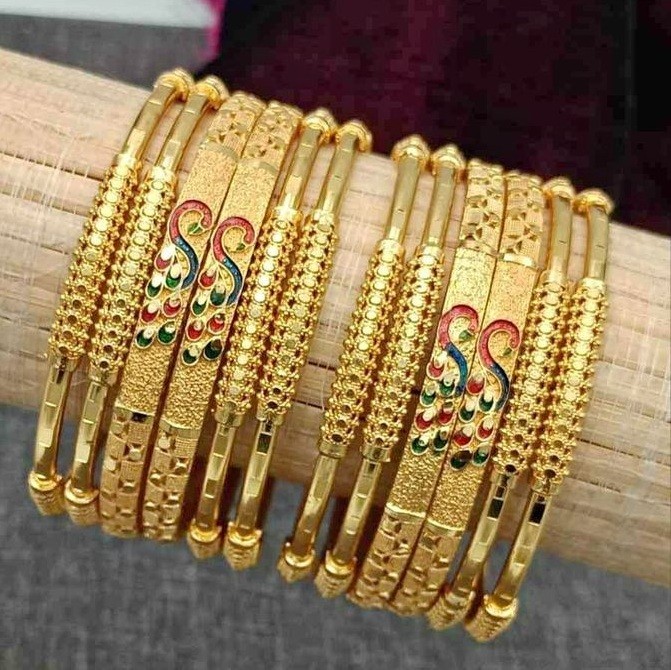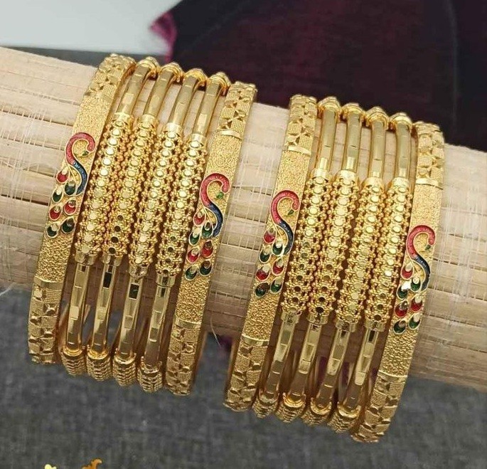Micro plated gold bangles with premium quality in combo 6 pcs sets for women.